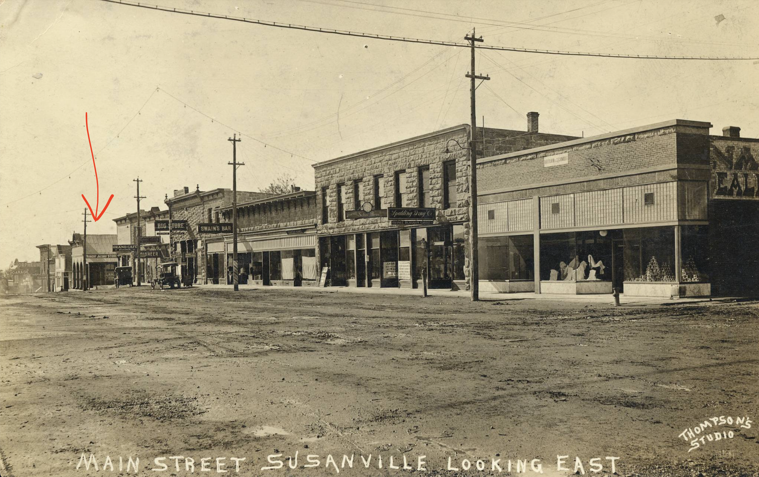 This shot from a little further up Main St shows some of the neighboring businesses in the early 1900’s, but I’m not sure of the exact date. This photo is labeled with “Thompson’s Photography,” and Thompson’s photography studio was in operation in Susanville between 1913 and 1920… so that narrows it down quite a bit!